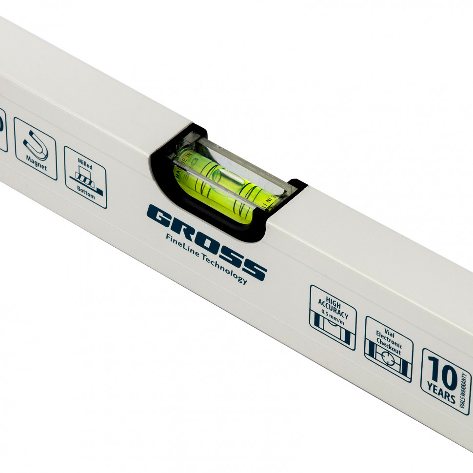 - Погрешность 05 мм/м — базовая поверхность уровня фрезерована, пузырьковые ампулы установлены с электронным контролем точности.