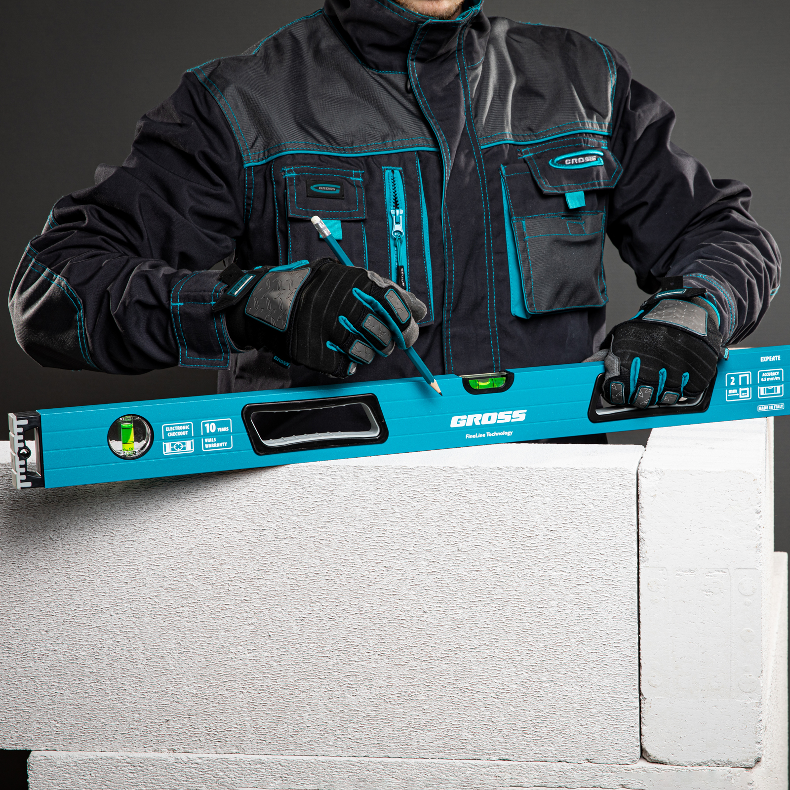 Усиленный алюминиевый уровень Gross 34328 длиной 800 мм, с ударопрочными заглушками, рукоятками и 3 глазками, — универсальный инструмент для решения профессиональных задач на строительной площадке. Благодаря ему можно выровнять поверхности относительно горизонтали и вертикали или проверить соответствие углу 45 градусов.