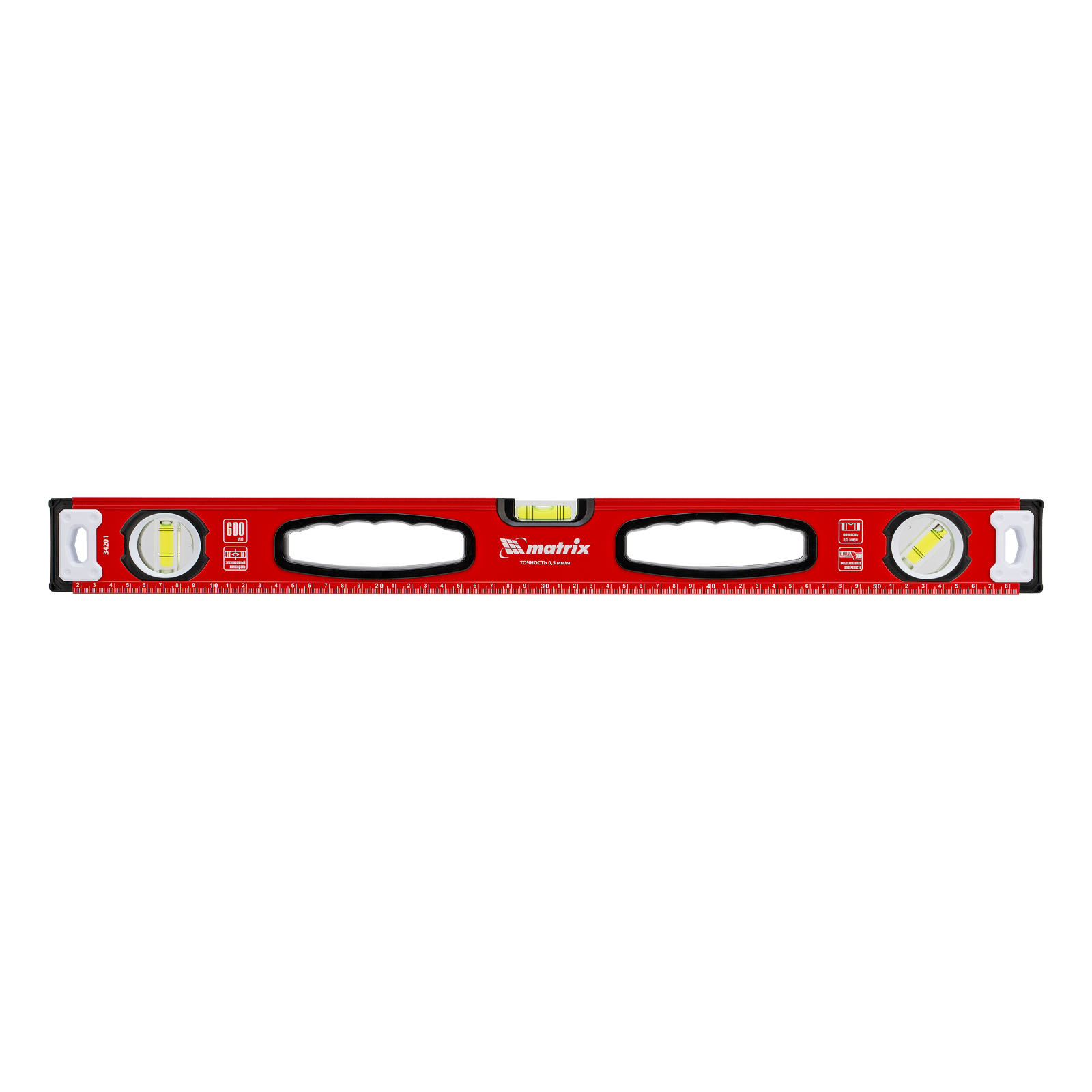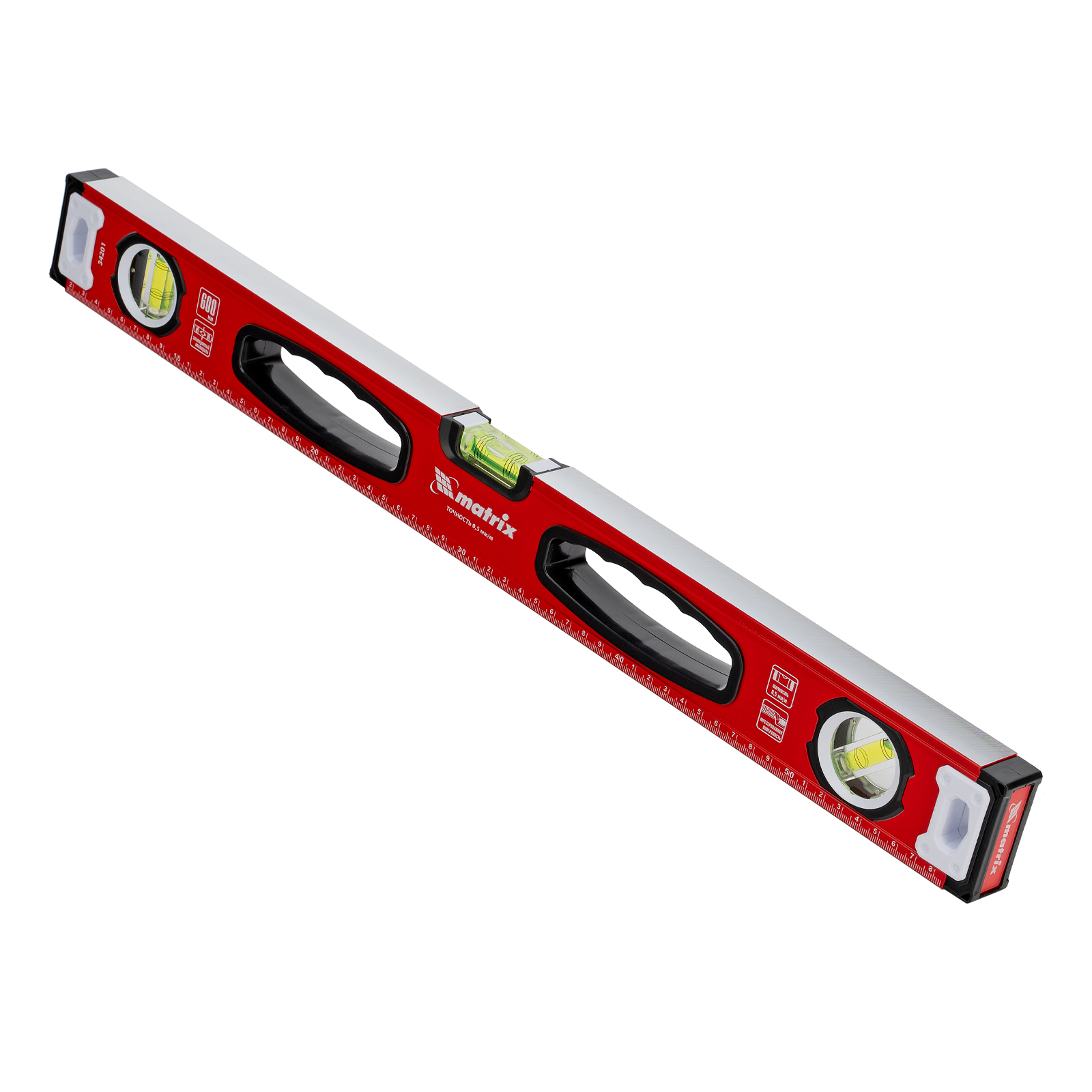 Уровень алюминиевый, фрезерованный, 3 глазка, рукоятки, 600 мм Matrix в Челябинске