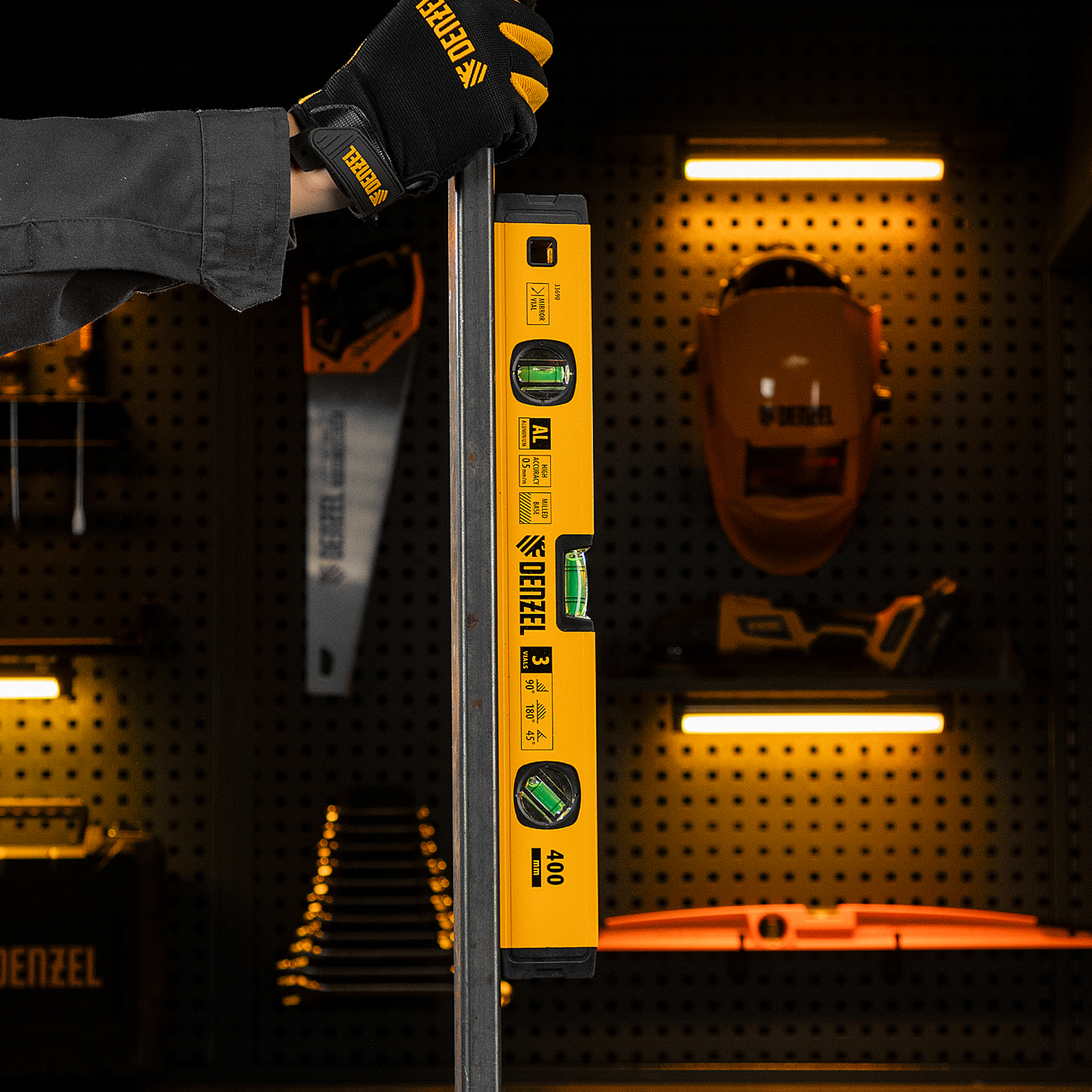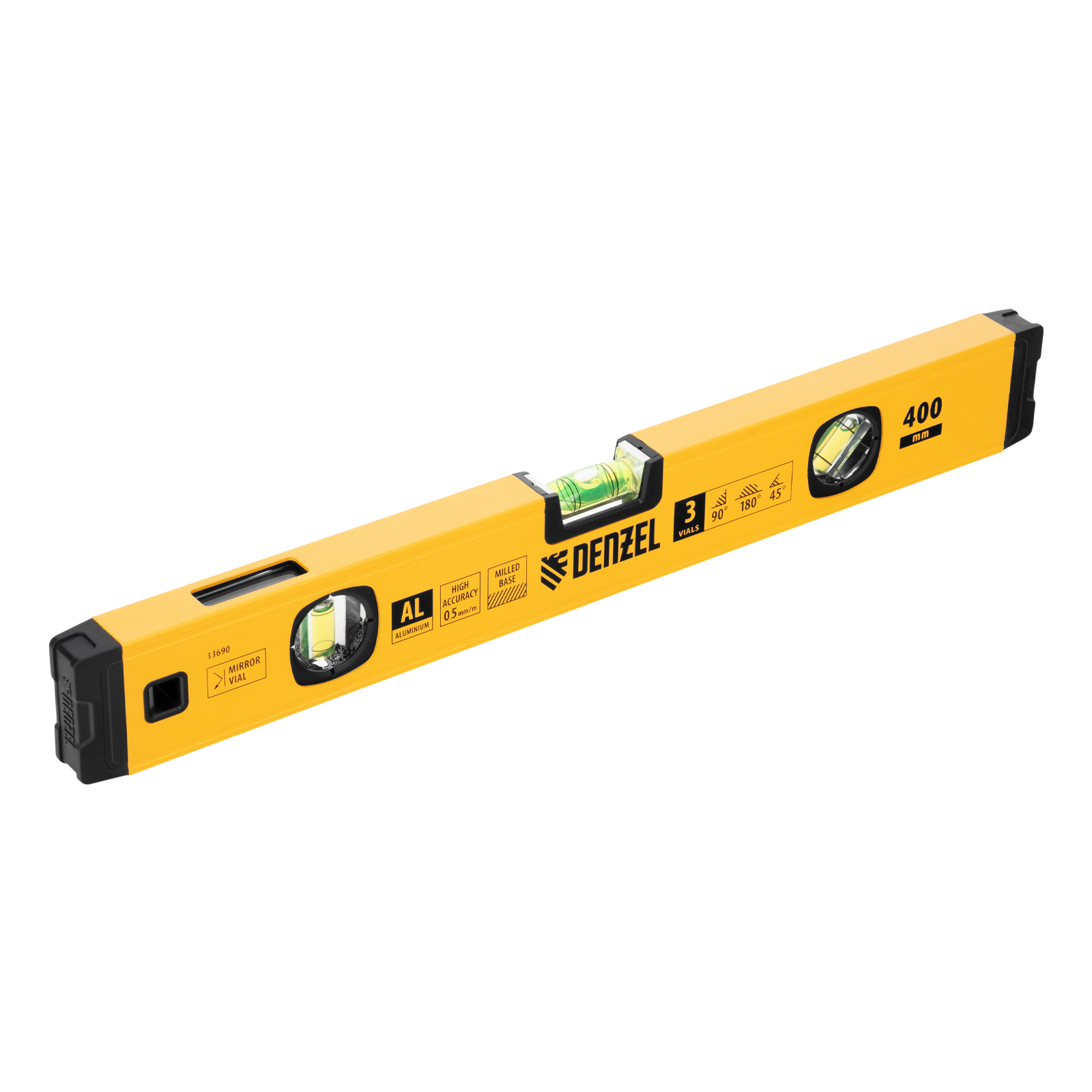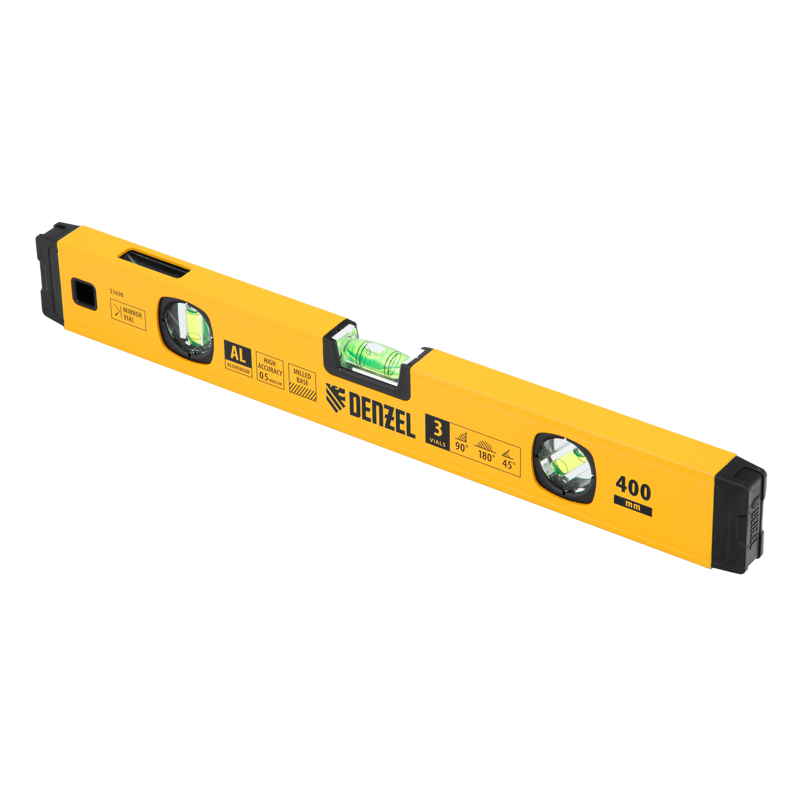 Уровень алюминиевый, магнит., фрезерованный, 3 глазка (1 зеркал.) 0,5 мм/м, 400 мм Denzel в Челябинске