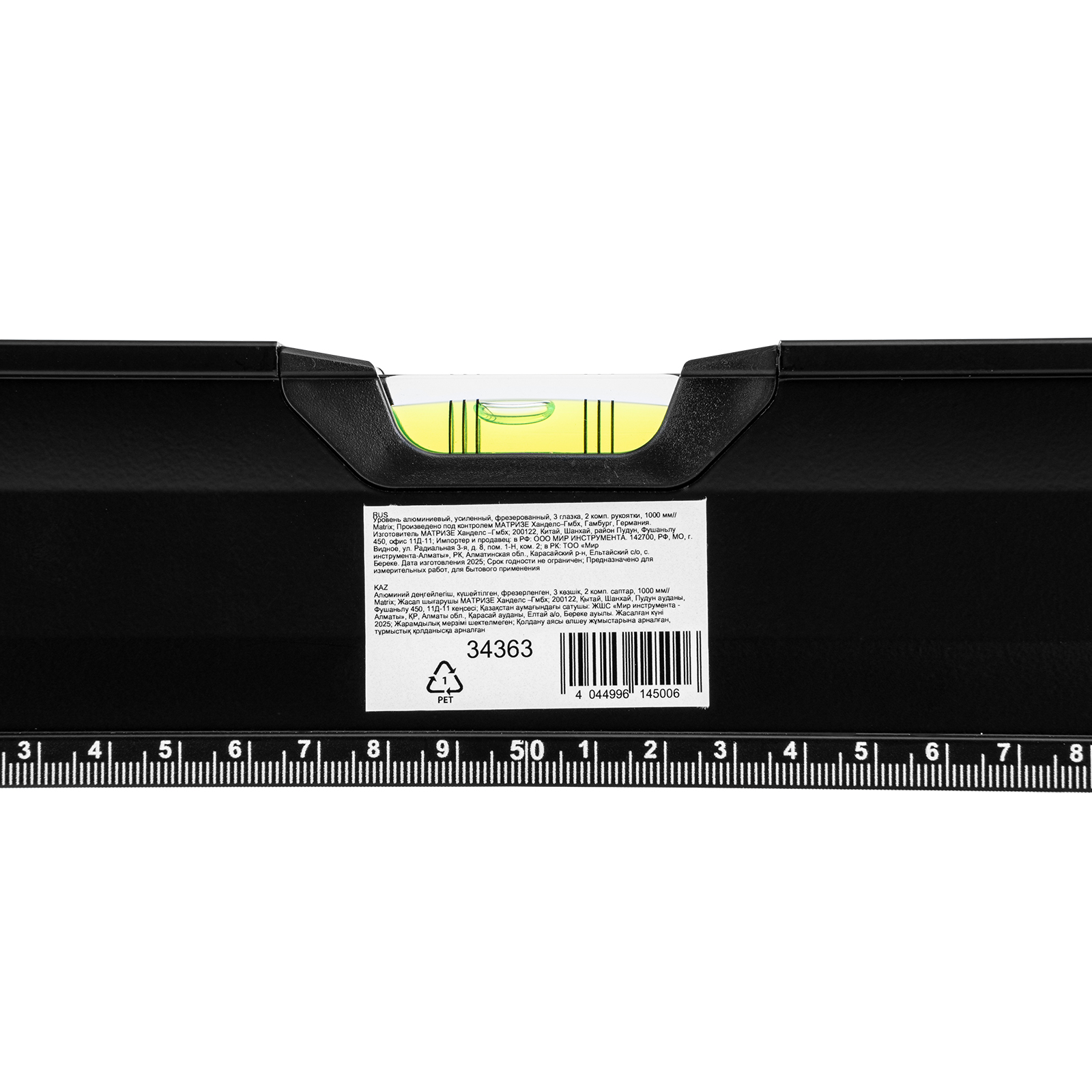 Уровень алюминиевый усиленный Matrix 34363 длиной 1000 мм, фрезерованный, с 3 глазками и двухкомпонентными рукоятками, служит для проверки горизонтальных, вертикальных поверхностей, а также точности угла 45°. Пригодится частному мастеру и профессионалу для проведения строительных, ремонтных и монтажных работ.