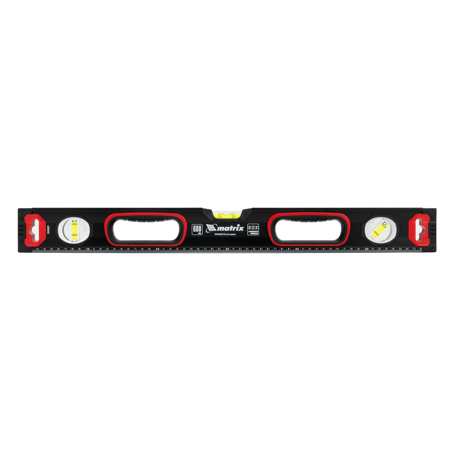 Уровень алюминиевый, усиленный, фрезерованный, 3 глазка, двухкомпонентные рукоятки, 600 мм Matrix в Челябинске
