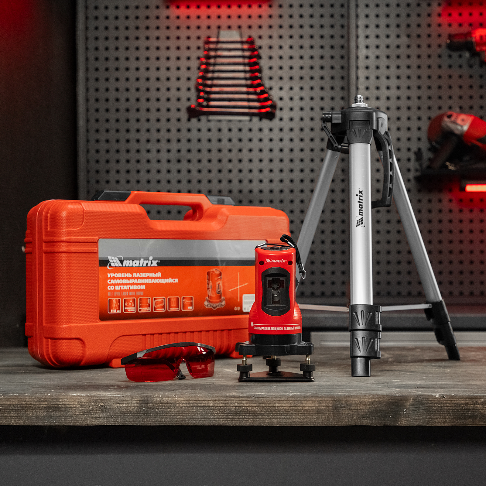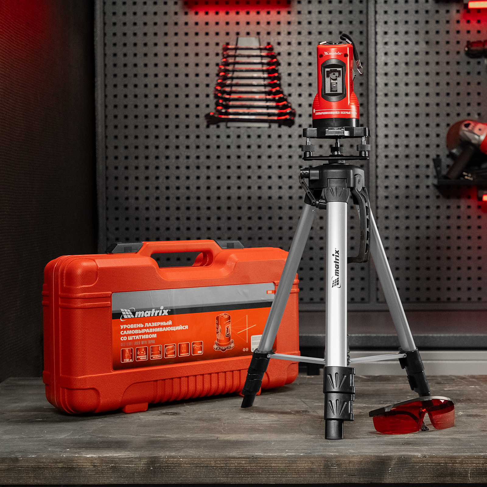 Лазерный уровень самовыравнивающийся, 150 мм, штатив 1150 мм, набор в пластиковом кейсе Matrix в Челябинске