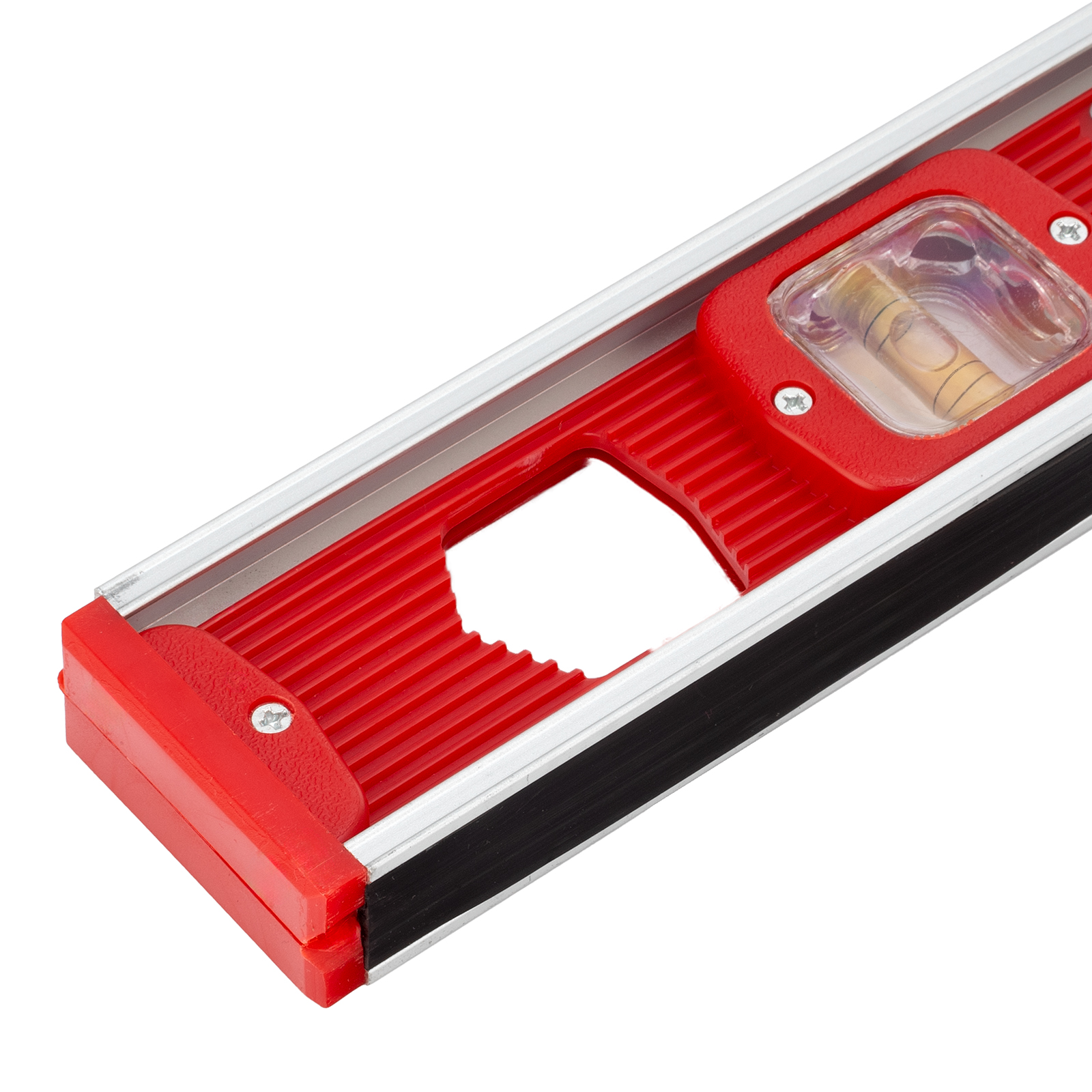 - Удобная фиксация на металлических поверхностях — уровень снабжен встроенными магнитами.