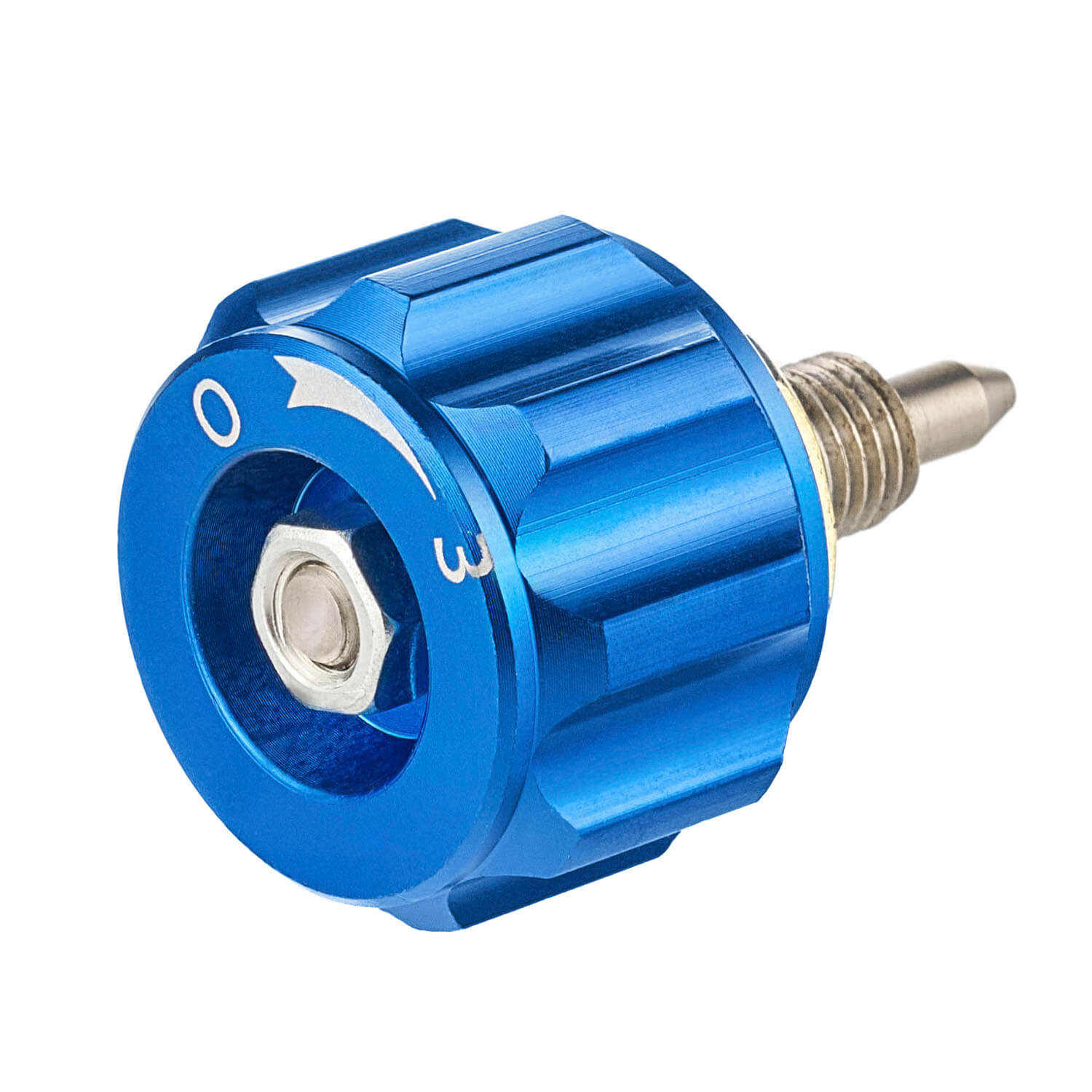 Вентиль КП изготовлен из латуни. Синий барашек изготовлен из алюминия и имеет гравировку на торцевой части с информацией о направлении закрытия (буква «З») и открытия (буква «О») вентиля.