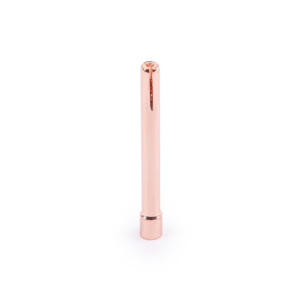 Корпус цанги изготавливается из меди. Функциональное назначение этого элемента сварочной горелки TIG заключается в надёжной и жёсткой фиксации тугоплавкого электрода из вольфрамового сплава. Длина корпуса цанги пятьдесят миллиметров. Данная деталь является сменным и изнашиваемым элементом.