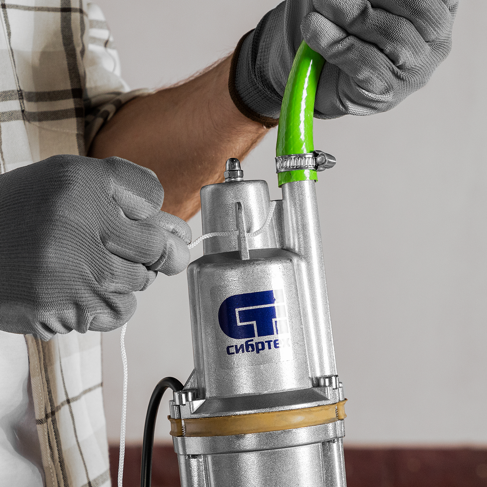 - Готовность к работе — трос для установки насоса и хомут для подключения шланга уже есть в комплекте.