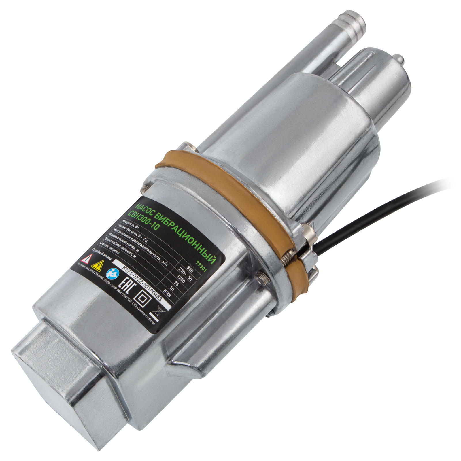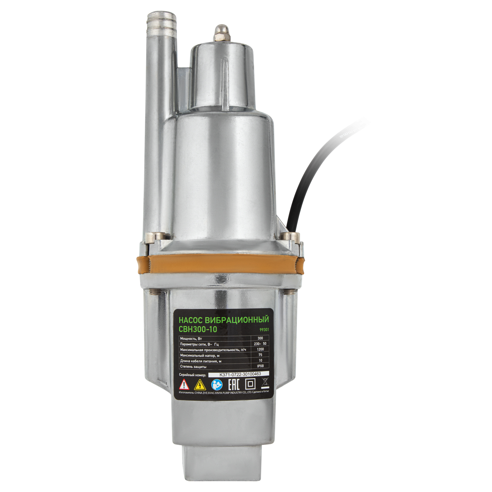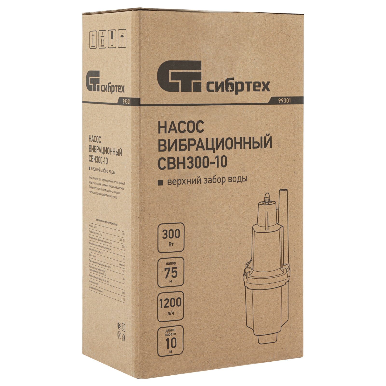 Вибрационный насос СВН300-10, верхний забор, 300 Вт, напор 75 м, 1200 л/ч, кабель 10 м Сибртех, 1200 л/ч в Челябинске