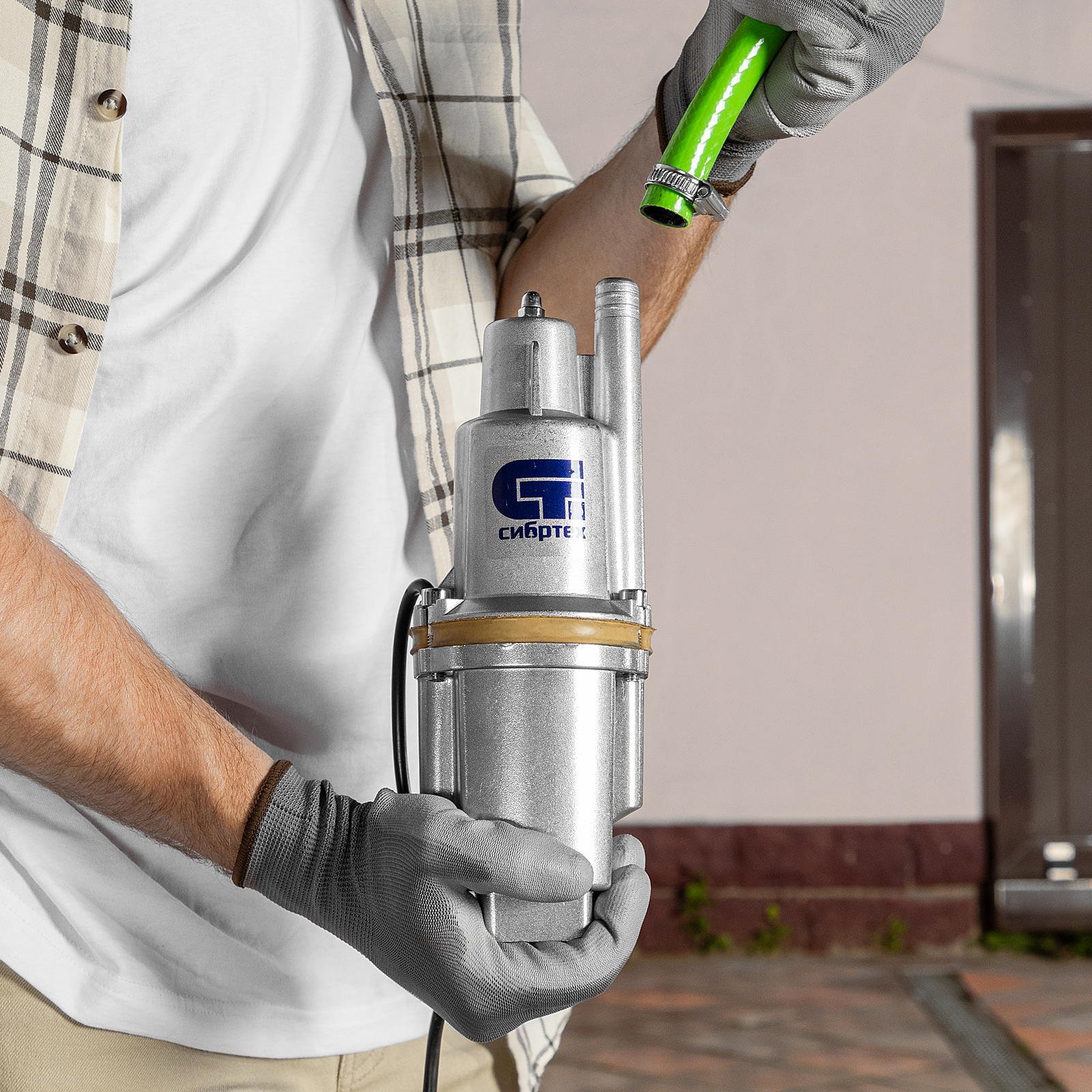 Вибрационный насос Сибртех СВН300-10 99301 мощностью 300 Вт, с системой верхнего забора жидкости и кабелем длиной 10 м, обеспечивает напор до 75 м и предназначен для подачи чистой воды со скоростью 1200 л/ч из колодцев, резервуаров, емкостей и водоемов с глубины до 5 м. Его можно использовать в системах полива и водоснабжения на даче. Насос выдает стабильное рабочее давление 7,5 бар и может обеспечивать несколько точек водоразбора, например, на кухне и в душевой кабине.