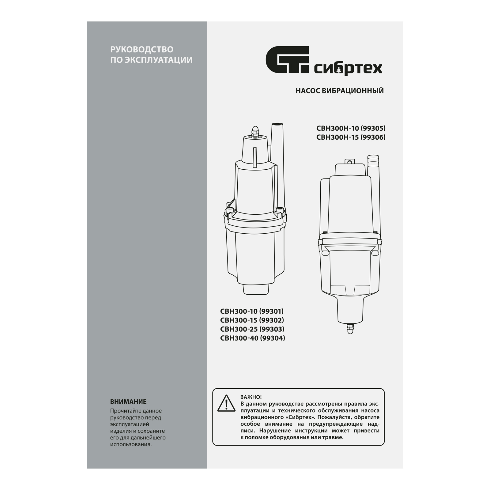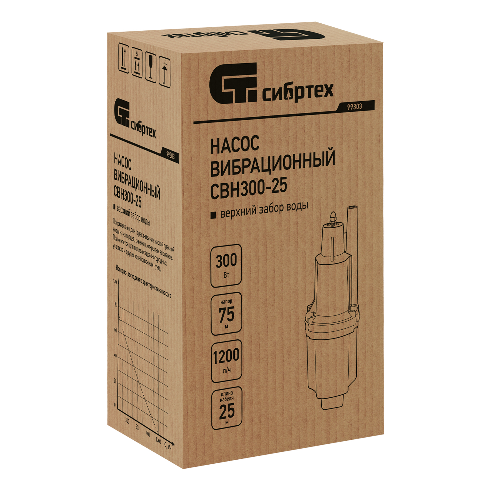 Вибрационный насос СВН300-25, верхний забор, 300 Вт, напор 75 м, 1200 л/ч, кабель 25 м Сибртех в Челябинске