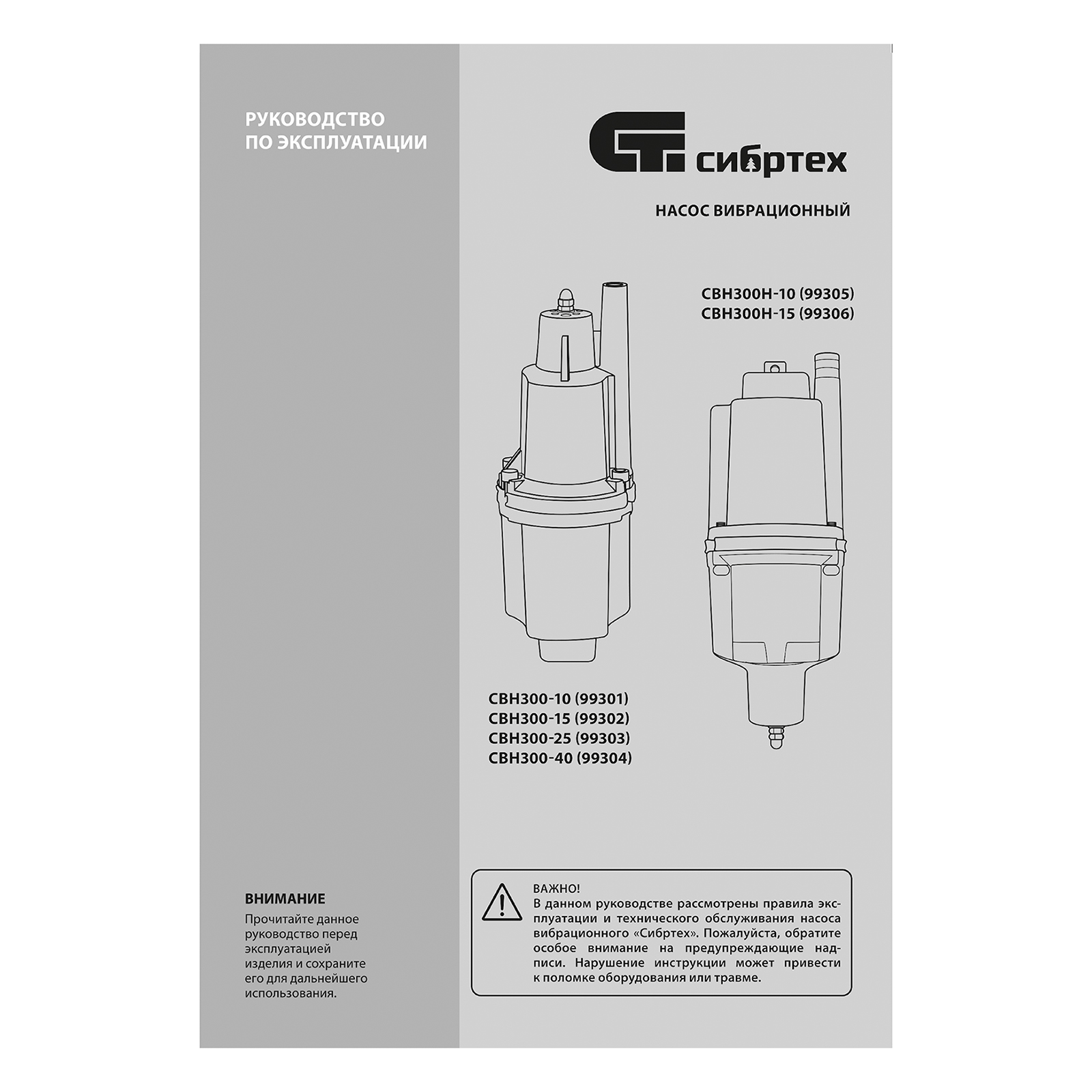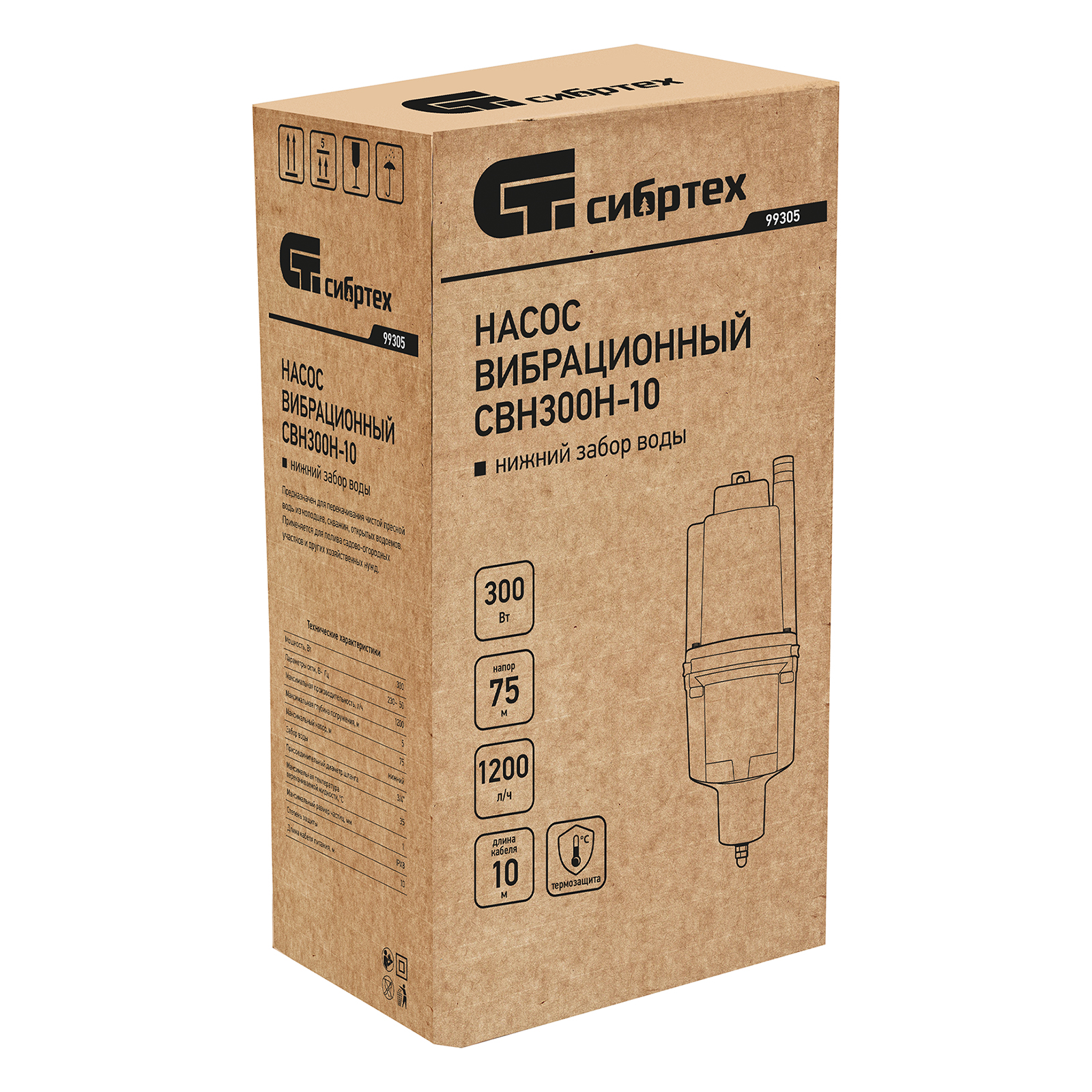 Вибрационный насос СВН300Н-10, нижний забор, 300 Вт, напор 75 м, 1200 л/ч, кабель 10 м Сибртех в Челябинске