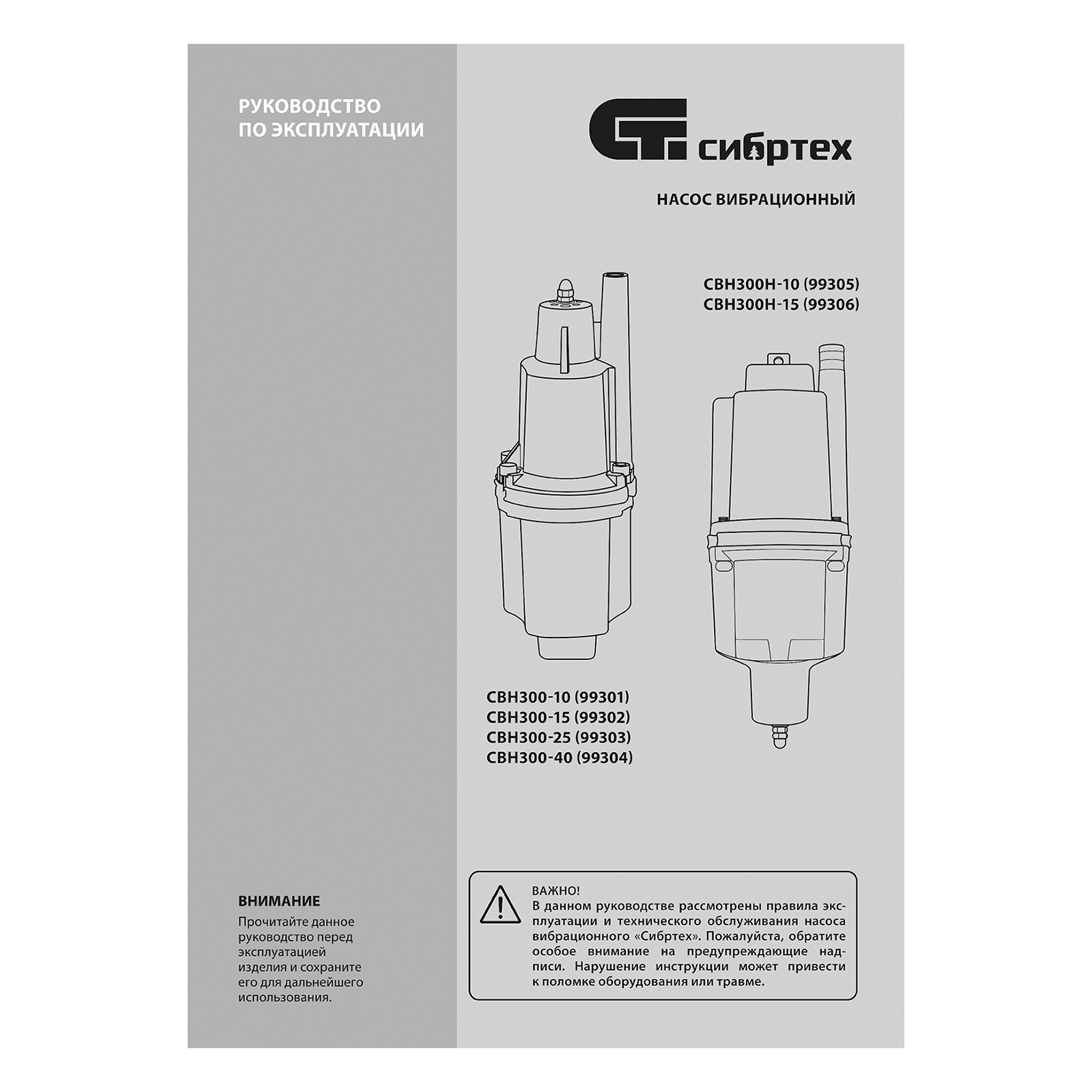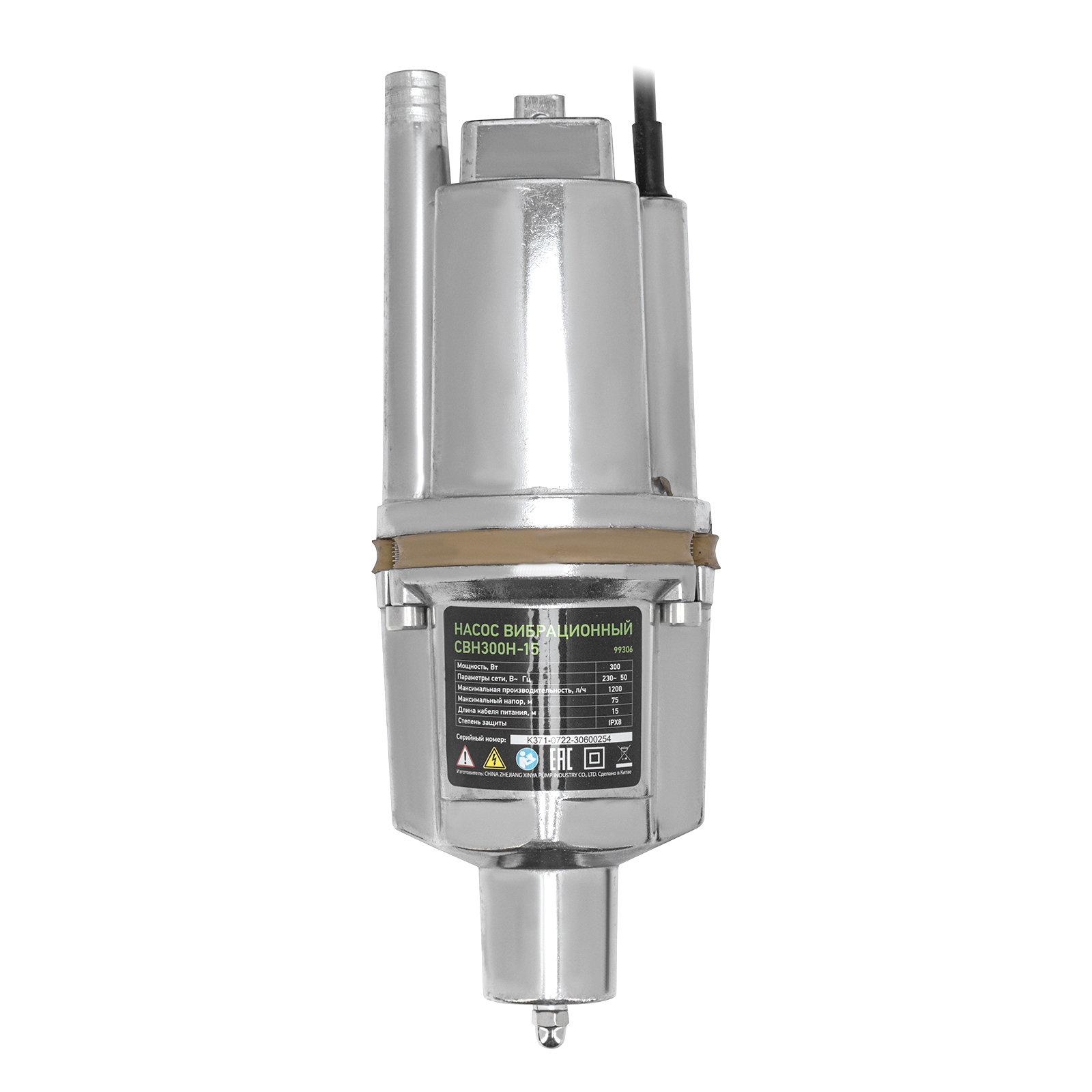 Вибрационный насос СВН300Н-15, нижний забор, 300 Вт, напор 75 м, 1200 л/ч, кабель 15 м Сибртех в Челябинске