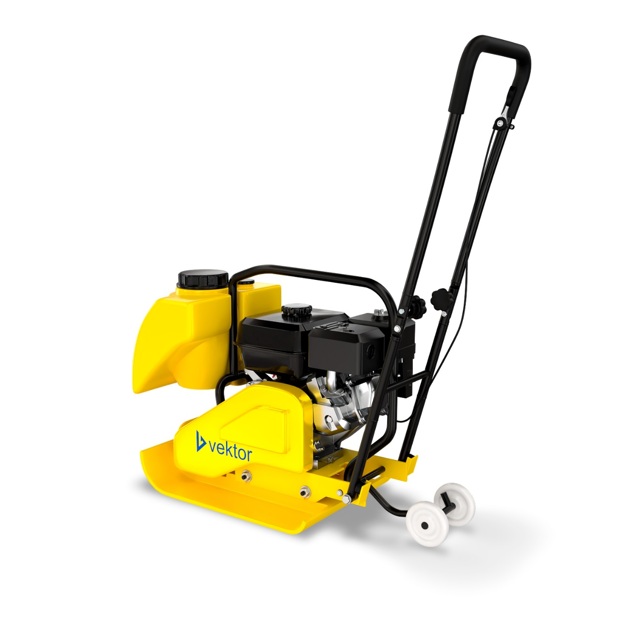Складывающаяся ручка управления и колесо для перемещения упрощают транспортировку виброплиты.