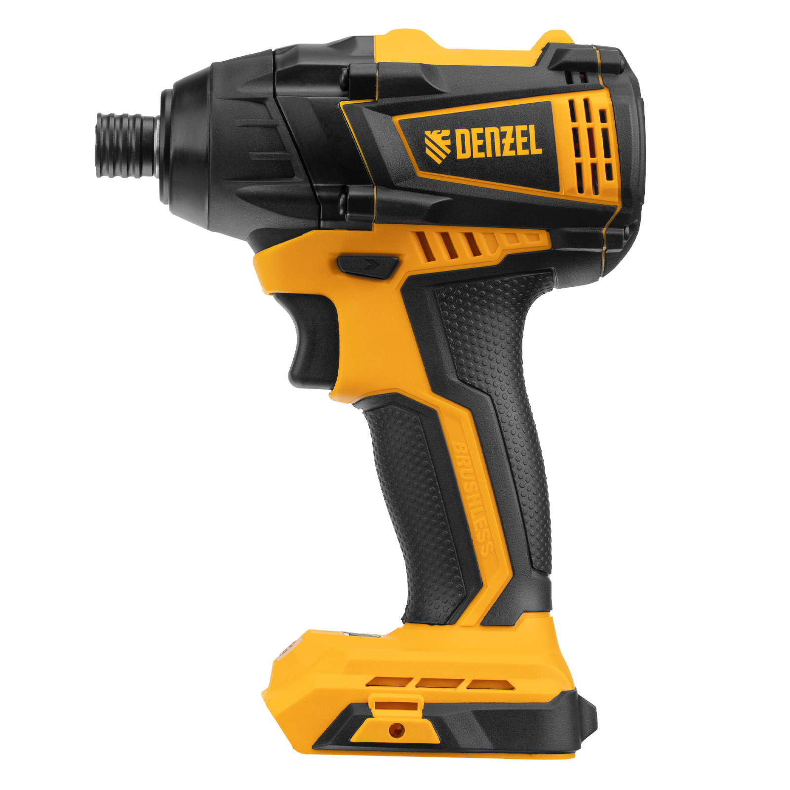Ударный аккумуляторный винтоверт Denzel CID-IB-200-0 26511 с бесщеточным двигателем работает от аккумулятора Li-Ion с рабочим напряжением 18 В (не входит в комплект поставки) и благодаря высокому крутящему моменту 200 Нм подходит для завинчивания и отвинчивания винтов и шурупов, а также затягивания и откручивания гаек. Эффективен для демонтажа перетянутого и закисшего крепежа, закручивания длинных болтов и шурупов. Пригодится для сборки мебели и различных конструкций.,Аккумуляторный винтоверт не зависит от стационарного источника энергии. Инструмент работает на платформе 18V Denzel battery system и совместим с элементами питания 18 В.