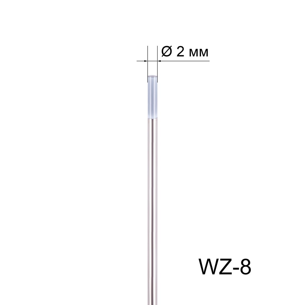 Неплавящийся вольфрамовый электрод марки WZ-8 предназначен для аргонодуговой сварки (TIG) на переменном (AC) токе. Электрод легирован оксидом циркония (ZrO₂). Вольфрамовые электроды WZ-8 используются для сварки алюминия, магния и их сплавов. Часто применяются в военно-промышленном комплексе. Электроды этой марки обеспечивают лёгкое зажигание и стабильное горение дуги, хорошо выдерживают высокую токовую нагрузку. Во время сварочного процесса кончик электрода формируют в форме сферы.ПРОЧНАЯ УПАКОВКАВольфрамовые электроды поставляются в специальных пластиковых пеналах. Прочная и жёсткая упаковка выгодно отличается от картонной, т.к. исключает случайную деформацию электродов при доставке и в условиях хранения на складе.ПРЕИМУЩЕСТВА:Сварка алюминия, магния и их сплавовСтабильная дугаВыдерживает большую токовую нагрузкуРабочий наконечник электрода формируется в форме сферыФУНКЦИОНАЛЬНЫЕ ОСОБЕННОСТИ:ПОДБОР ВОЛЬФРАМОВОГО ЭЛЕКТРОДА: Вольфрамовые электроды разделяются по цвету наконечников в зависимости от сферы применения, что необходимо учитывать при выборе.ЗНАЧЕНИЯ ТОКА ДЛЯ ЭЛЕКТРОДОВ РАЗЛИЧНОГО ДИАМЕТРА: * в таблице приведены примерные допустимые значения