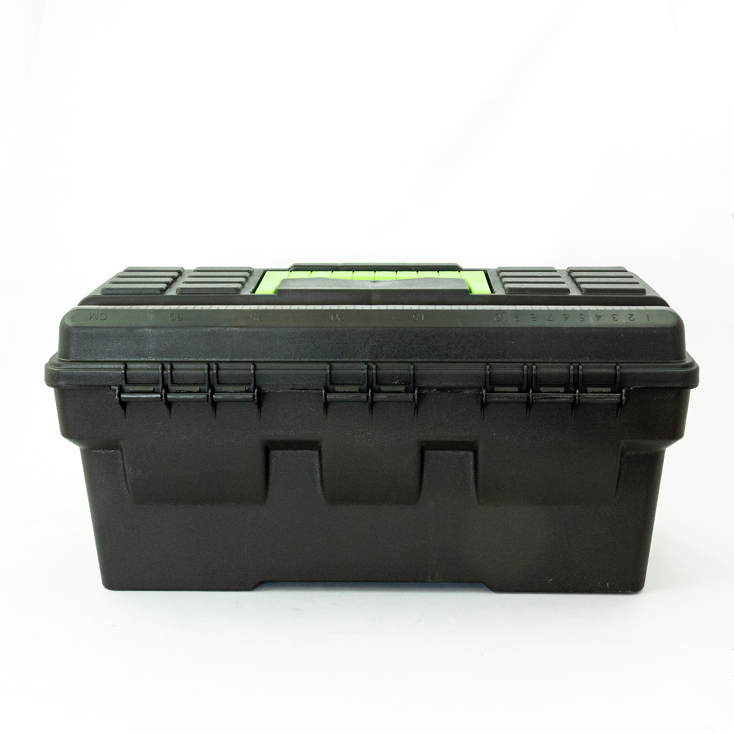 Ящик для инструмента Сибртех 90804 из пластика, размером 410 х 215 х 197 мм (длина 16"), — удобное вместилище для инструментов, бытовых мелочей, рыболовных снастей. На крышку нанесена измерительная шкала в сантиметрах и дюймах, поэтому можно проводить измерения, даже если под рукой нет линейки. Ящик пригодится в поездке, на рыбалке, а также дома, на даче или в гараже.