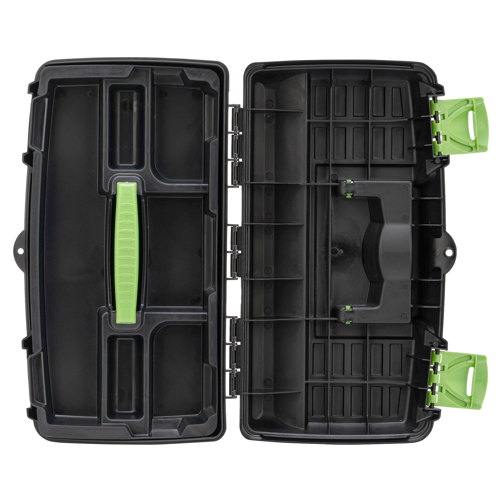 Ящик для инструмента Сибртех 90805 из пластика, размером 430 х 235 х 250 мм (длина 18"), — удобное вместилище для инструментов, бытовых мелочей, рыболовных снастей. На крышку нанесена измерительная шкала в сантиметрах и дюймах, поэтому можно проводить измерения, даже если под рукой нет линейки. Ящик пригодится в поездке, на рыбалке, а также дома, на даче или в гараже.