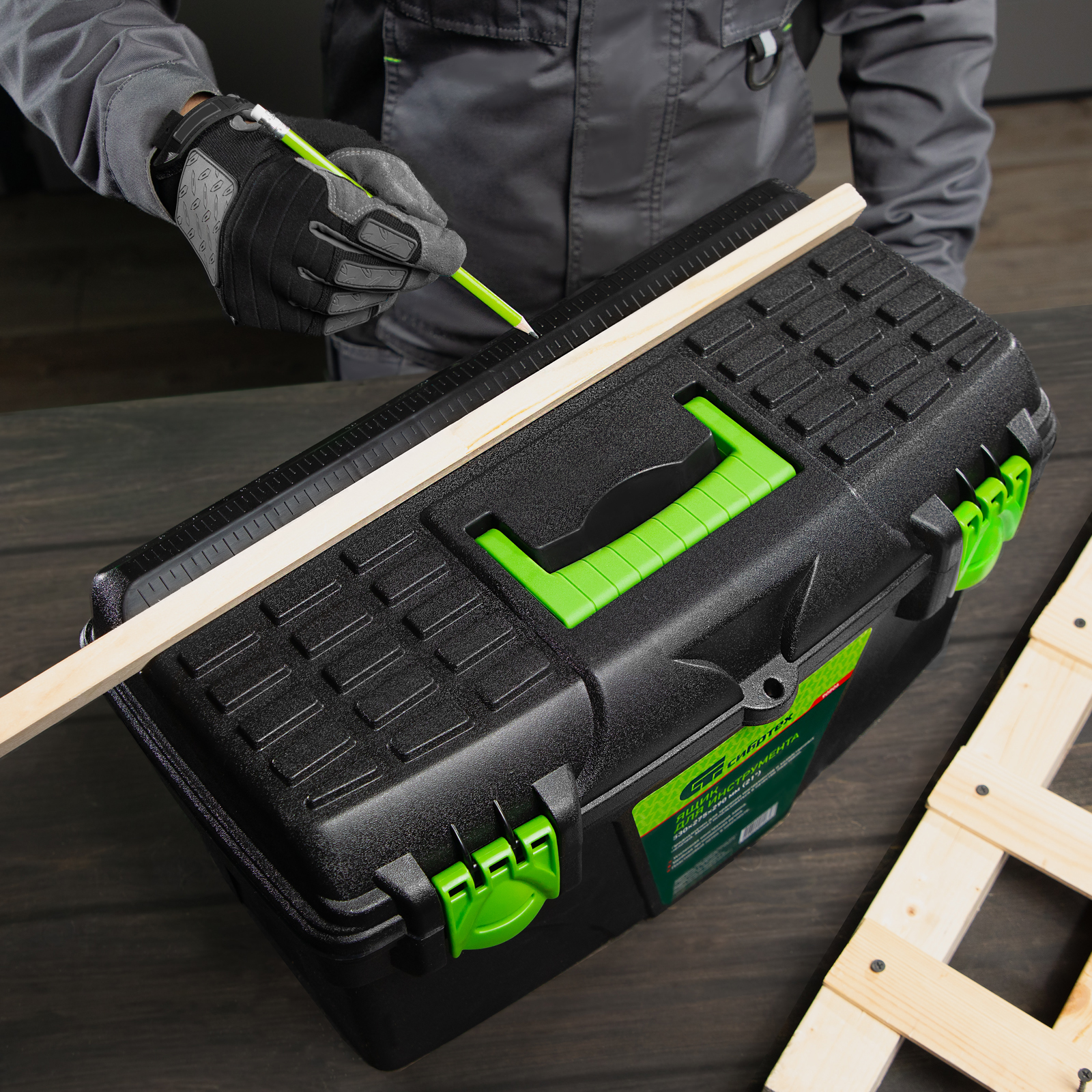 - Эргономичная ручка на крышке облегчает транспортировку ящика.