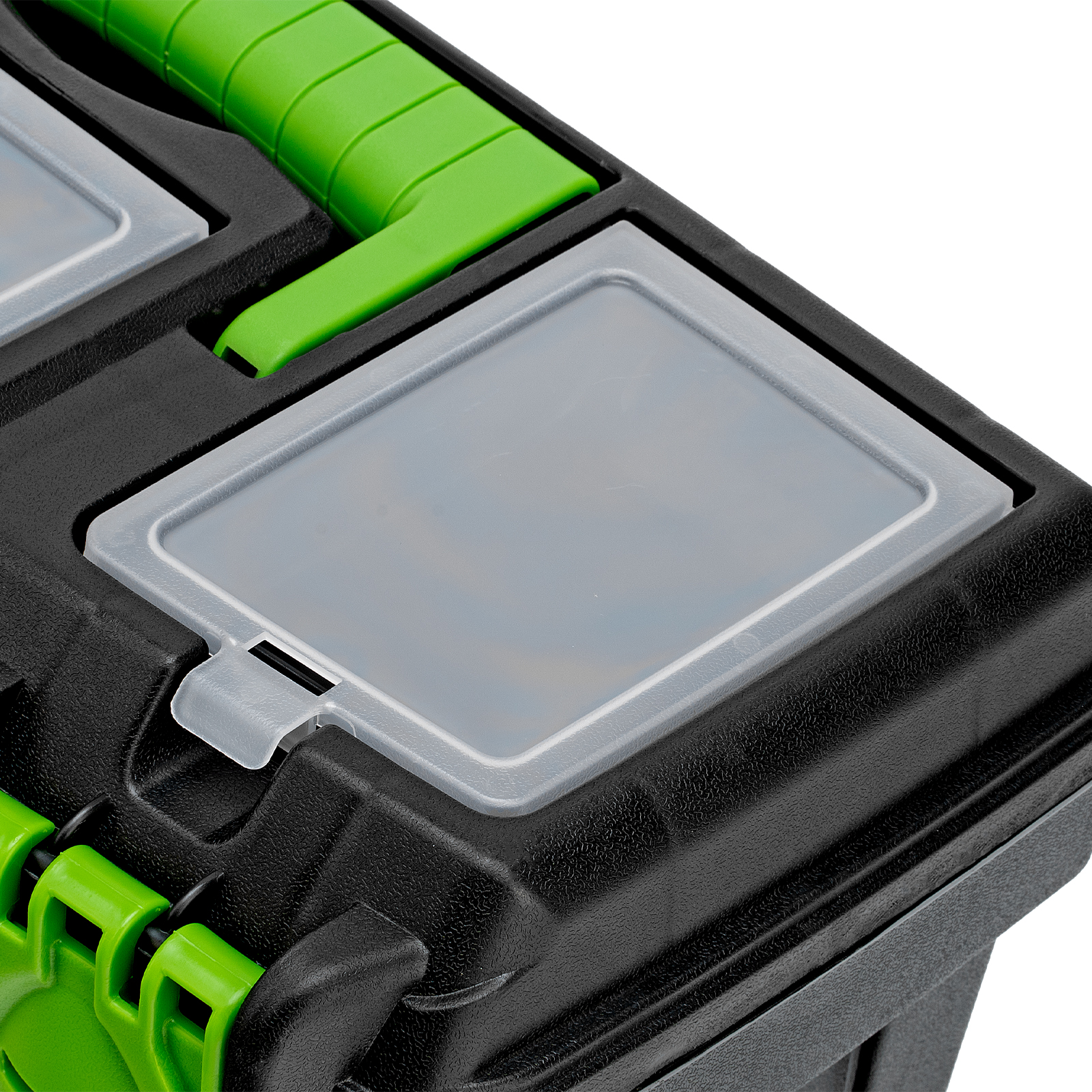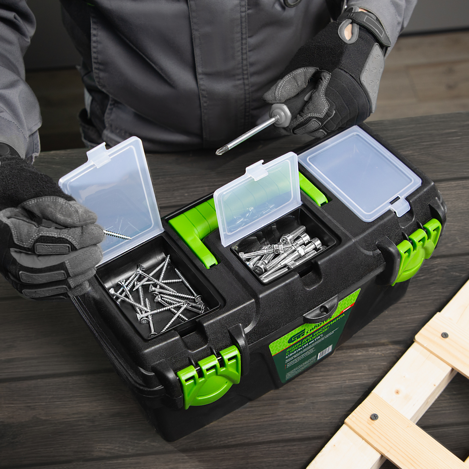 - Удобное хранение крепежа и мелких деталей — в крышке имеются органайзеры.