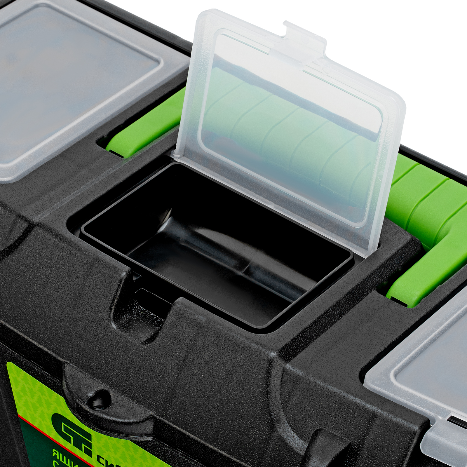 - Комфортная транспортировка — удобная рукоятка облегчает перемещение даже максимально заполненного ящика.