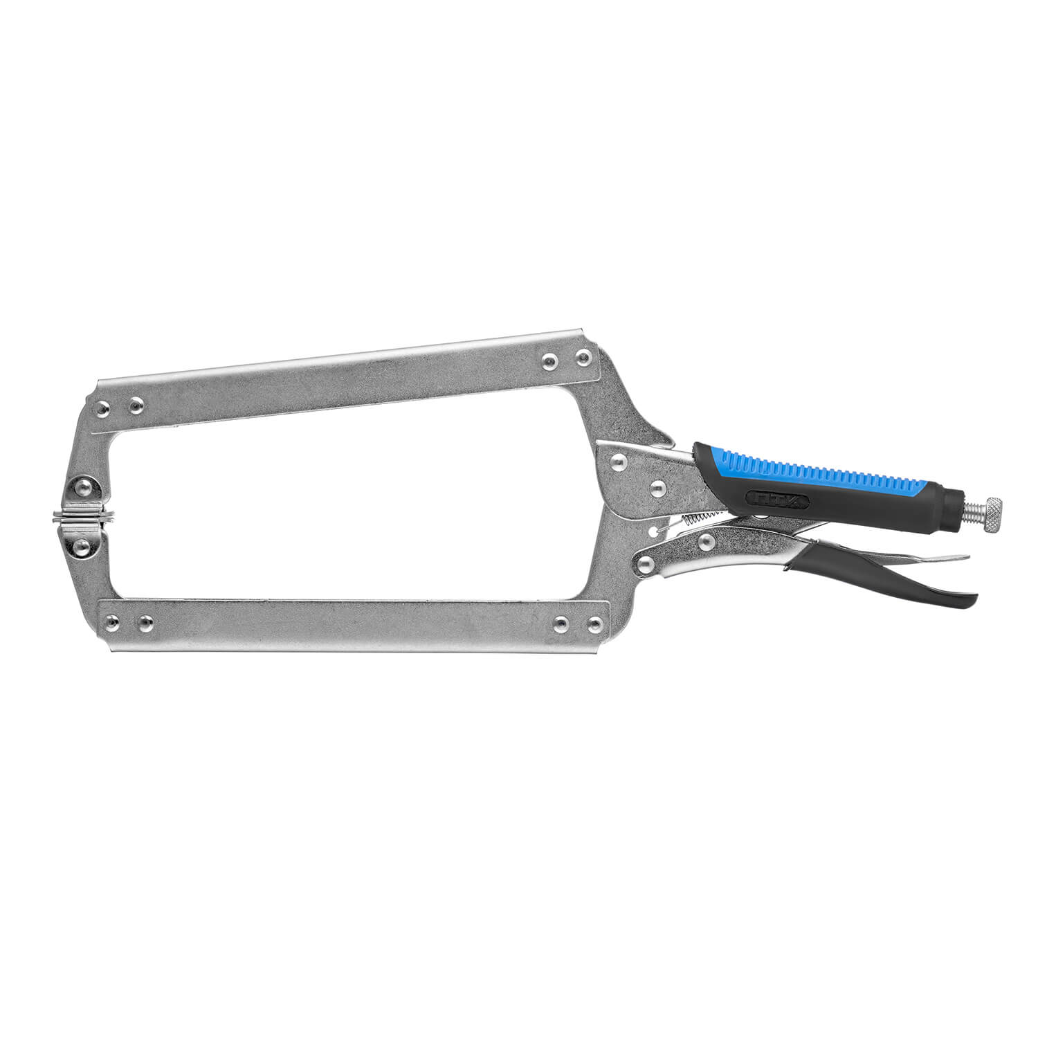 Зажим с подвижными губками и винтом, который расположен на рукоятке и обеспечивает надежную фиксацию.