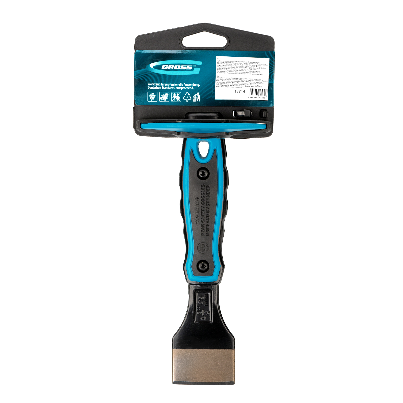 Зубило-конопатка Gross 18714 размером 200 х 45 мм-3/4 дюйма — ручной режущий инструмент, работающий под ударным воздействием молотка или киянки. Рассчитано на работу с деревянным срубом, плиткой, камнем, кирпичом. Используется для запечатывания швов, монтажа утеплителя в деревянных постройках, демонтажа облицовки и решения других задач.